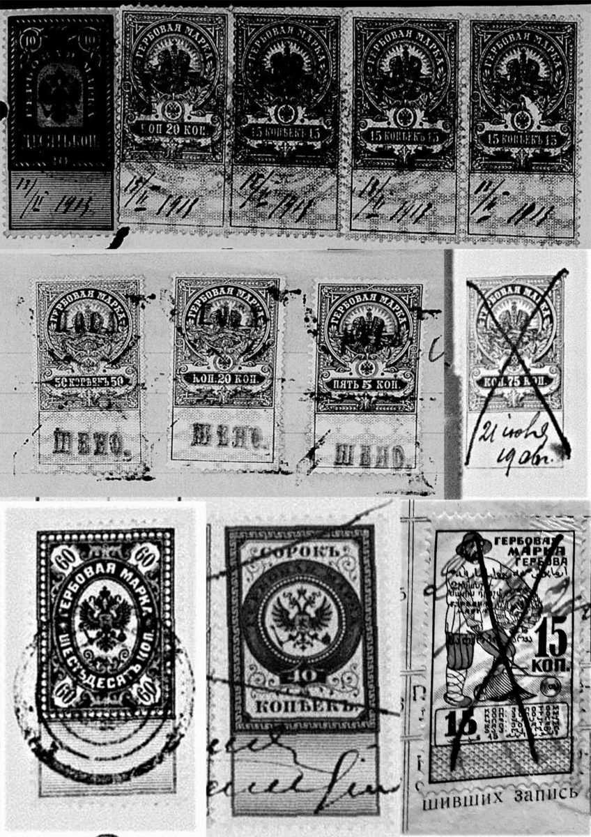 - 15-копеечная гербовая марка предназначалась для оплаты сбора за расписки о принятии или передаче заявления и денежных средств.