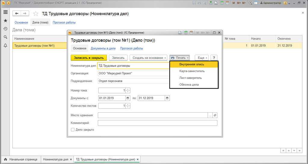 - Для обеспечения дополнительного удобства работы с номенклатурой, в одно и то же дело интегрируется преимущественно документация одного и того же года регистрации.