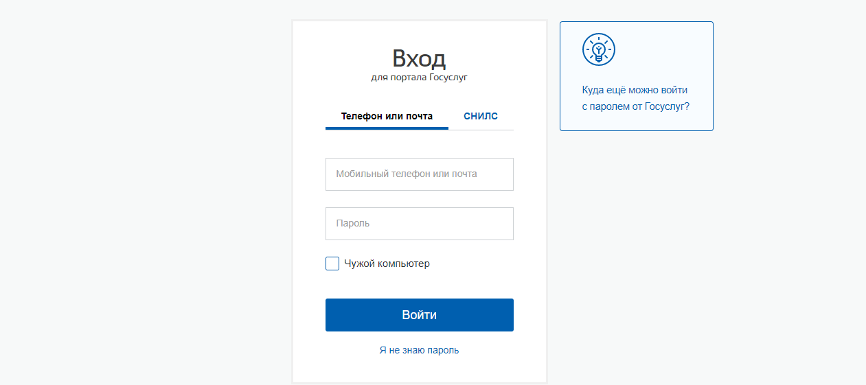- Нажать на открывшееся поле «вход» и дождаться автоматического перенаправления на окно портала ГосУслуги