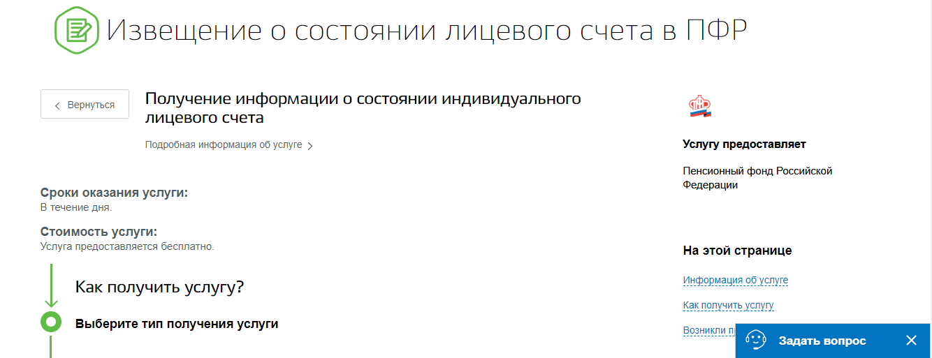 Подать заявку на получение извещения о состоянии личного счета можно через портал Госуслуги – система автоматически переведет пользователя в окно сайта Пенсионного Фонда