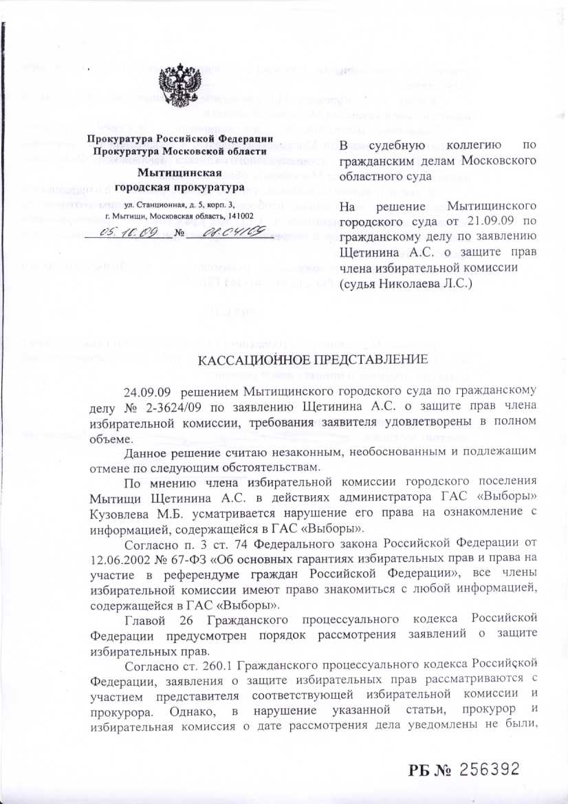 Кассационное и апелляционное представление прокурора