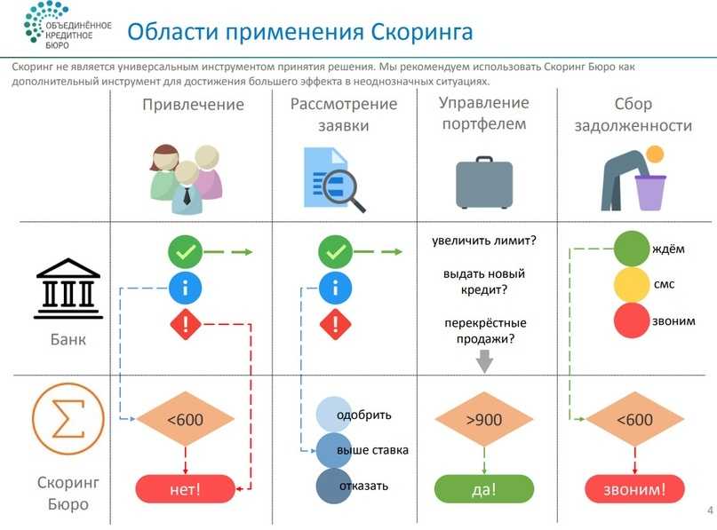 Скоринг оценка носит рекомендательный характер. Теоретически, работник кредитного отдела может «войти в положение» или сочувствовать заемщику, находящемуся в сложном финансовом положении. Но банковские инструкции и отрицательное заключение скоринг-системы автоматически перекладывают ответственность по возврату заемных средств на работника, игнорировавшего такие рекомендации. Поэтому отрицательное заключение компьютера – 100% отказ в выдаче кредита или займа, без объяснения причин.