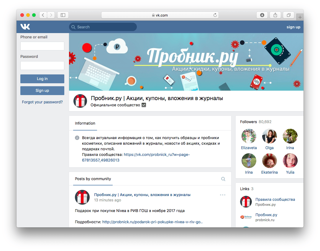 В самой популярной у русскоязычных пользователей соцсети можно найти абсолютно все. Неудивительно, что здесь есть странички и группы, в которых любители и любительницы косметики делятся информацией о бесплатных пробниках.