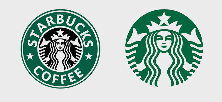 Первый образ русалки взяли с гравюры XVI в. У сирены убрали пупок, дорисовали улыбку. В 1987 г. коричневый цвет заменили на зеленый. Затем русалке убрали нижнюю часть тела. Сейчас кофейня использует разработанную в 2011 г. символику. На логотипе не осталось других изображений кроме верхней половины тела сказочного существа.
