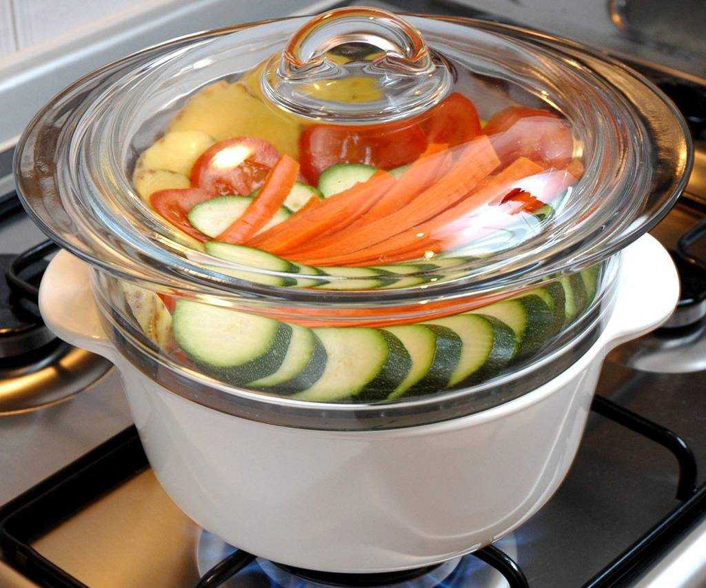 В пароварке можно приготовить большое количество блюд. Во время приготовления у продуктов сохраняется естественный цвет, полезные свойства и вкусовых качеств.