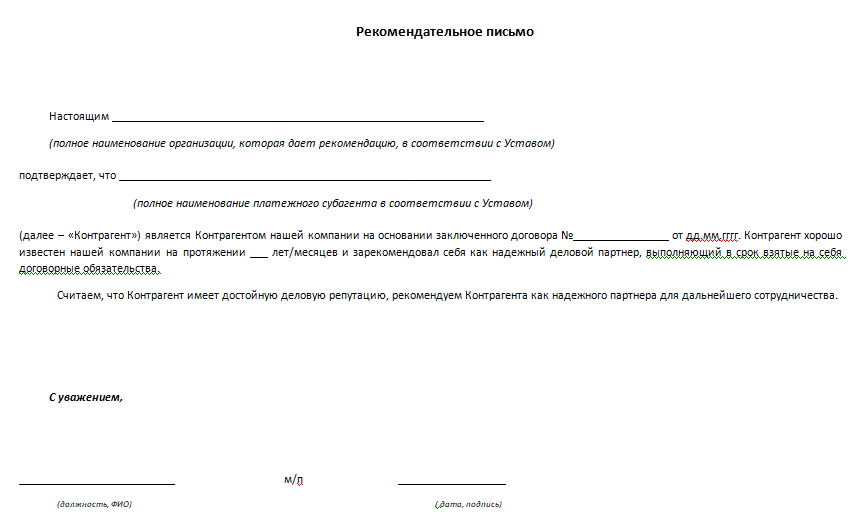 Рекомендательное письмо компании примеры