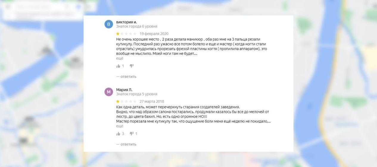 Еще одна распространенная ошибка. Если вы получили негативный отзыв – не оставляйте его без внимания. Рассерженный клиент, проблему которого игнорирует руководство, точно к вам не вернется. На примере этих комментариев клиенты пострадали от руки мастера во время получения услуги, и это точно повод внимательно изучить проблему!