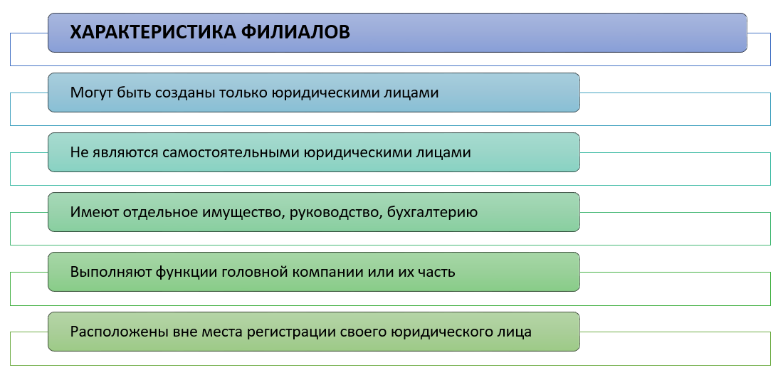 - Могут относиться только к юридическим лицам (индивидуальные предприниматели не могут иметь филиалы);