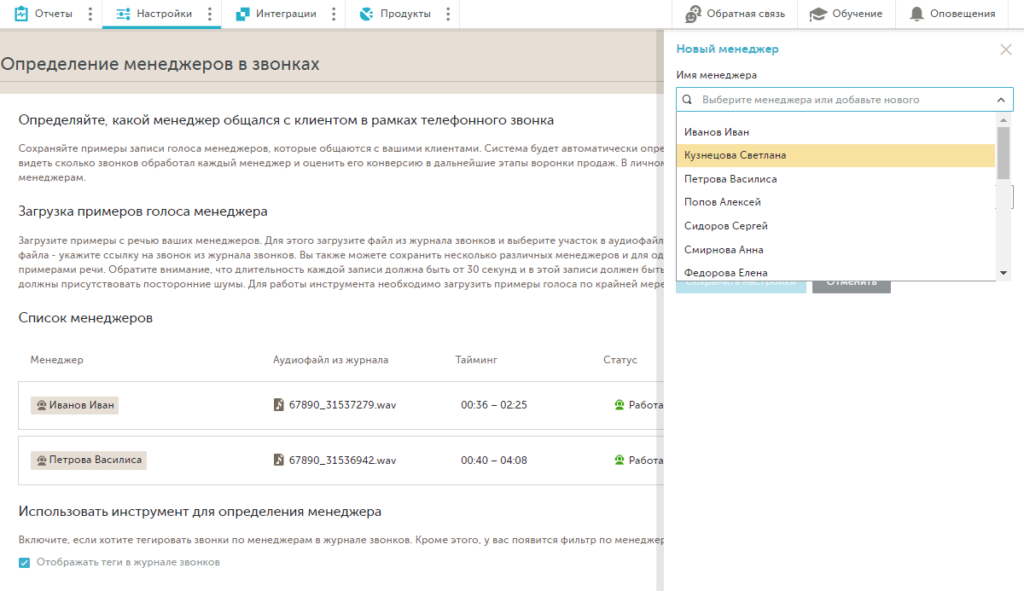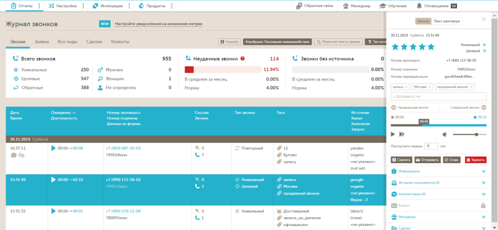 - Изучить и прослушать записи телефонных обращений