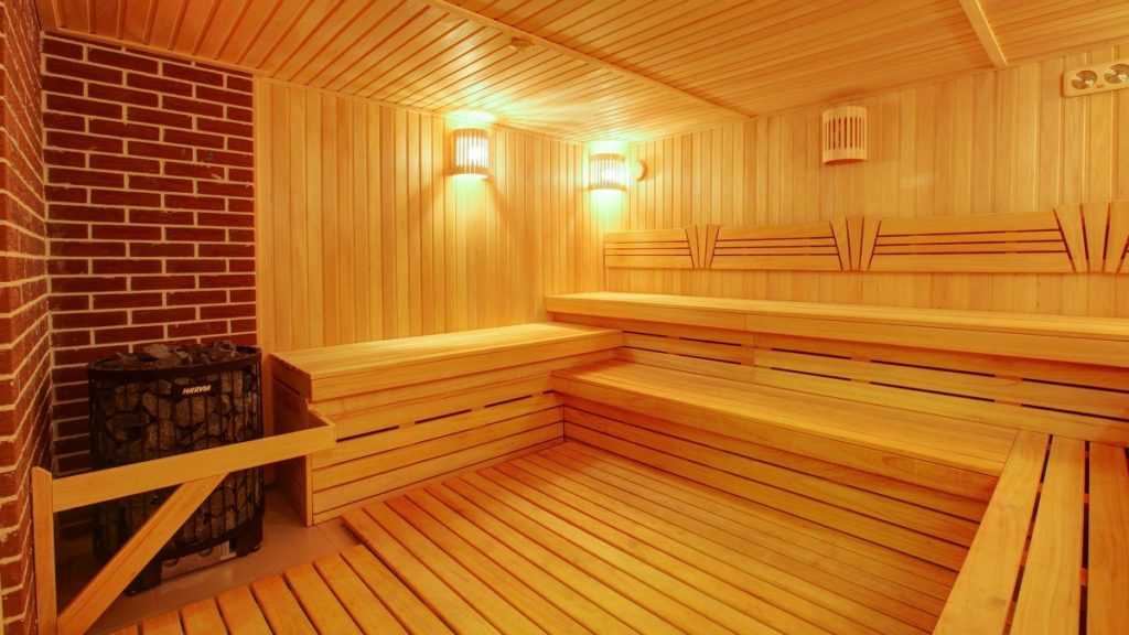 Высокая температура (до 130°С) , минимум влажности (не более 25%) — отличительные особенности финской сауны. Запрещено использовать веники и лить воду на камни. Польза от посещения этой бани — улучшается кровообращение, уходят все вредные вещества из организма, токсины, снижается вес. Противопоказания — это, конечно же, высокое давление. От горячего пара вам может стать плохо.