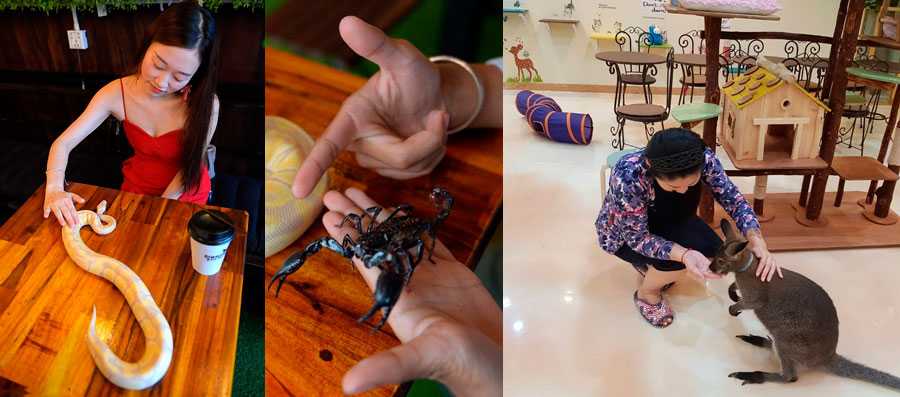 Что же создаёт уют там, где человек не проживает, не в его доме, а в месте, где можно встретить совершенно незнакомых людей? Оказывается, уютное кафе – это не только мягкий, «приглушённый» свет, не «кричащая» расцветка интерьера, вкусная еда и напитки, это ещё могут быть и любимые животные, или животные, с которыми хотелось бы познакомиться поближе и подружиться. Тайм-клуб, тайм-кофейня, свободное пространство – синонимы уютного кафе с единомышленниками. Открываются кафе с разными видами животных, птиц, предоставляя городским жителям в наш «зацифрованный» век общение с живой природой. Существуют кафе с кроликами, попугаями, черепахами, змеями, пауками, игуанами и другими представителями мира животных.