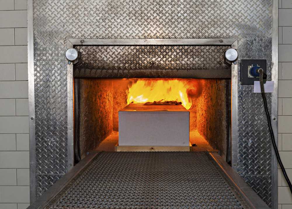 Затем коробка либо отправляется в морозильную камеру, если нужно отложить процедуру, либо сразу же в печь. Печь разогревается очень быстро, коробка горит сначала при 600 градусов Цельсия, а потом температура увеличивается в два раза. Дым, который выделяется при сжигании, дожигается дополнительным газом. На выходе получают угарный газ и горсть пепла, который собирается в специальный пластиковый контейнер, а затем выдается хозяину.