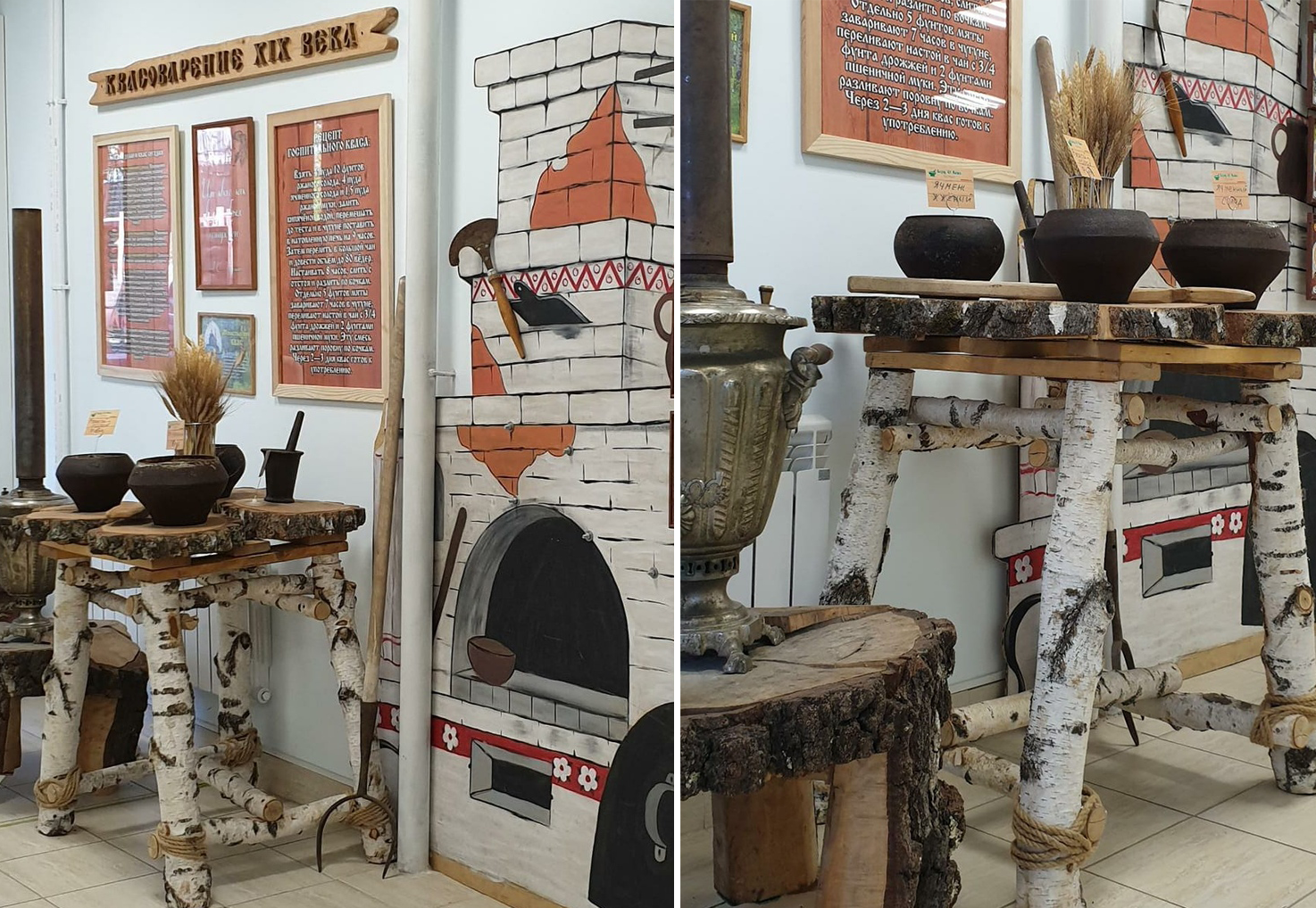 У нас есть нарисованная печь, березовый столик с чугунками и утварью. Здесь же настоящая печь, но не русская, а электрическая — в ней прокаливаем зерно, которое наполняет помещение хлебным ароматом