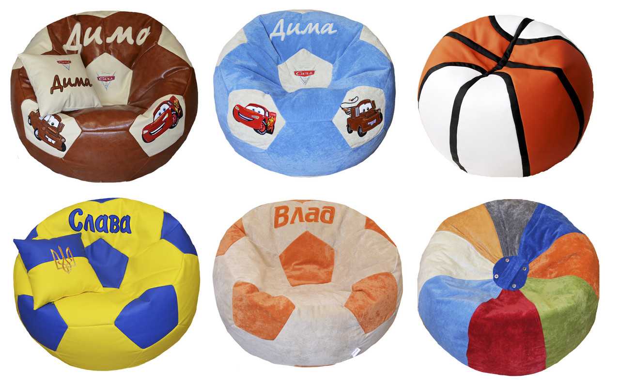Третий вид – для детей. Главная идея в том, чтобы сделать кресло или диванчик, похожий на игрушку. Материалы для производства должны быть экологически чистыми, желательно натуральными. Это подобие многофункциональных мягких игрушек: мишка, колобок, божья коровка, черепаха, футбольный мяч. Этот список можно продолжать до бесконечности, стоит лишь включить фантазию и представить себя ребенком.