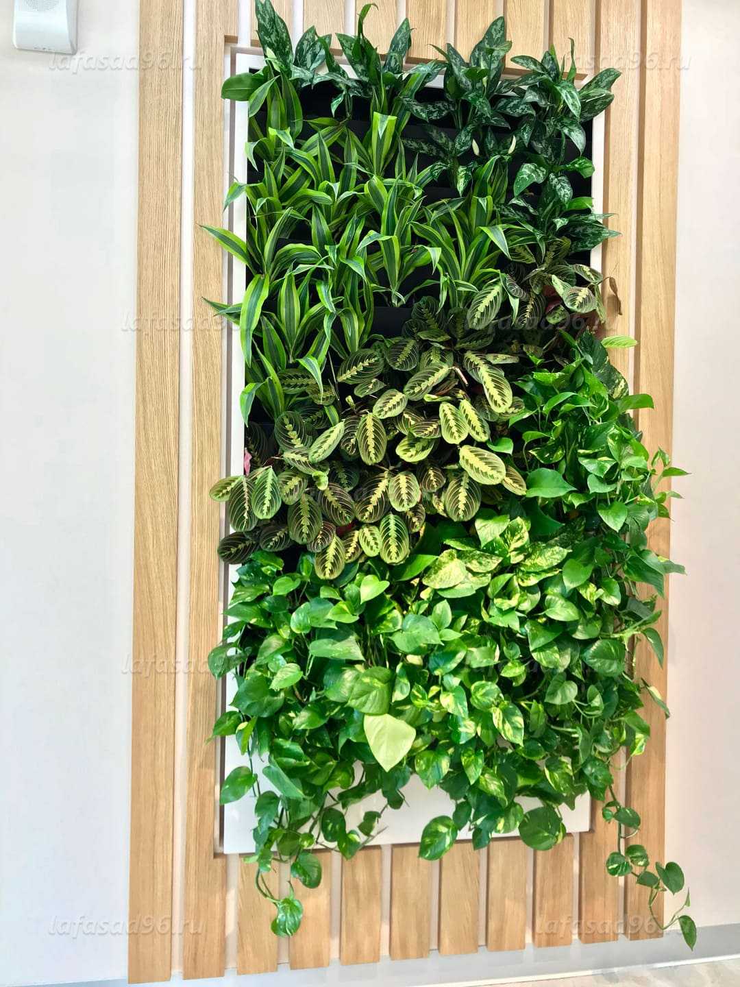 Фитостена, которую Дарья и Виталий сделали для стоматологической клиники. На ней растения: аглаонема, драцена, маранта и сциндапсус.