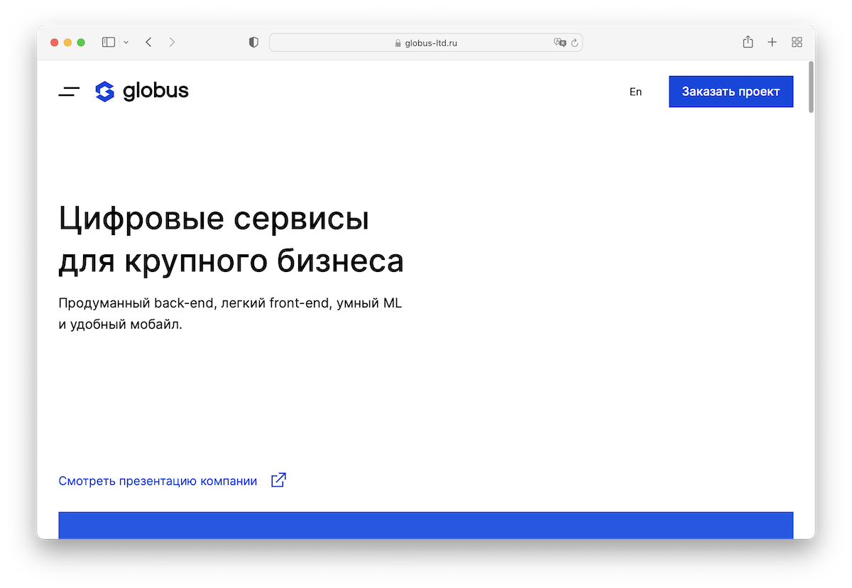 Globus — фокусируются на разработке и интеграции крупных корпоративных систем: высоконагруженный back-end, легкий front-end, продуманный мобайл и умный ML