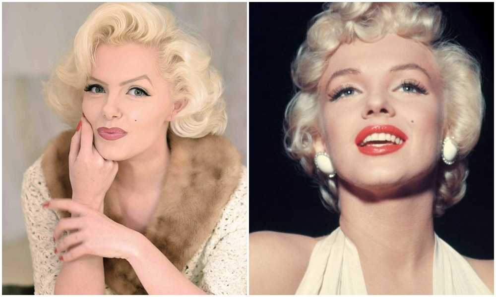 Это Сьюзи Кеннеди (40 лет), которая живет в Лондоне. Она рассказала, что пятнадцать лет назад она шла в колледж, и один парень сказал, что она похожа на Мэрилин. Он предложил обратиться в агентство. Сьюзи воспользовалась этим советом.