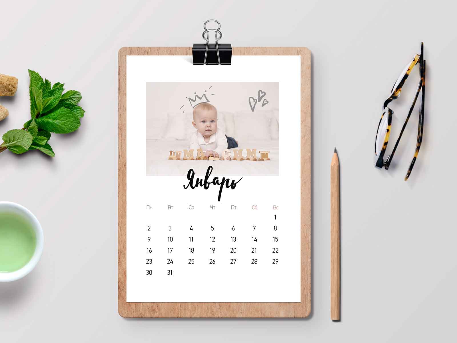 Тут можно работать как одному, так и в паре с фотографом. Календари на каждый месяц с новым фото или один с большой фотографией на весь год – простор для воображения.