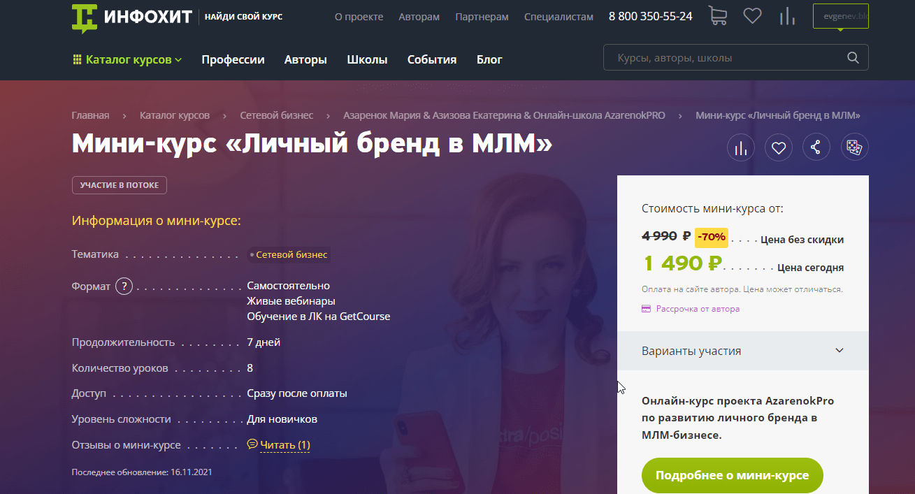 После завершения курса вы овладеете инструментами продвижения в МЛМ. Имея свою уникальность, вы сможете достичь успеха в сетевом бизнесе и выйти в лидеры продаж, своего сегмента рынка.