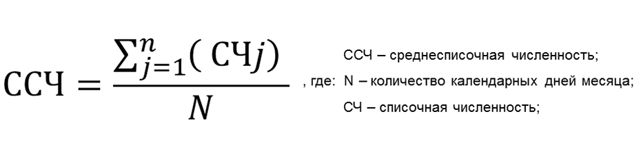 Формула расчёта среднесписочной численности за месяц