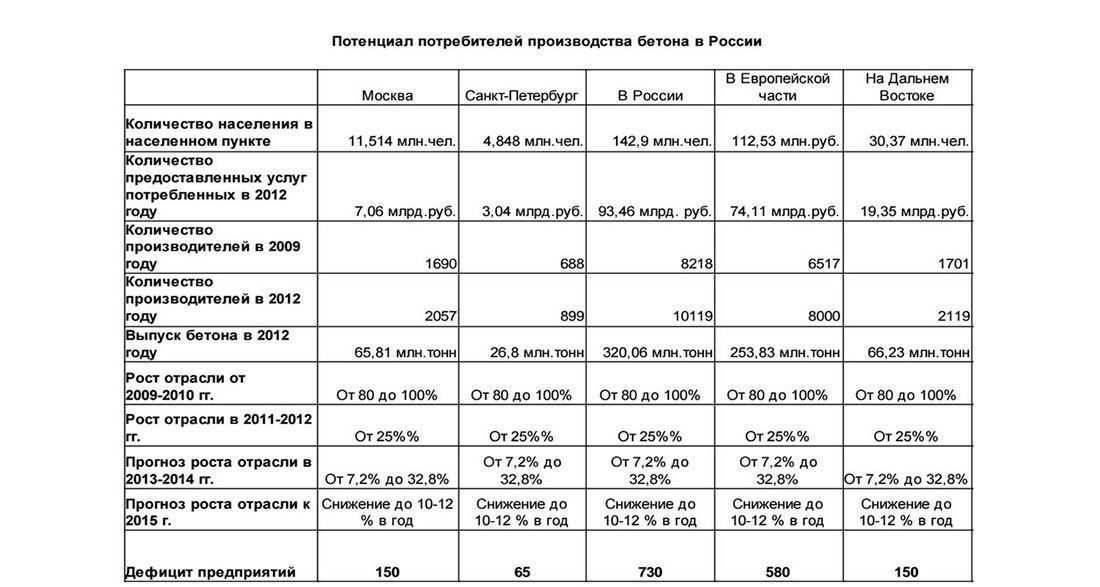 производству бетона. Вам нужно понять, с кем и как предстоит конкурировать,
