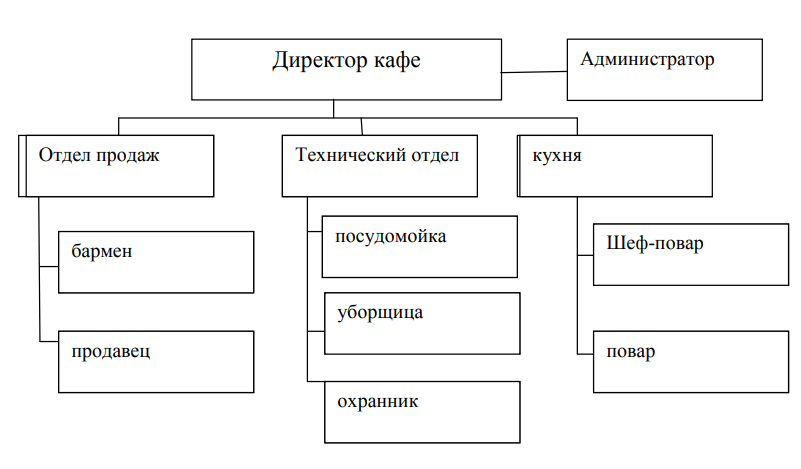 - Технический отдел – хозяйственное обслуживание помещения (уборщица, посудомойка, охранник).