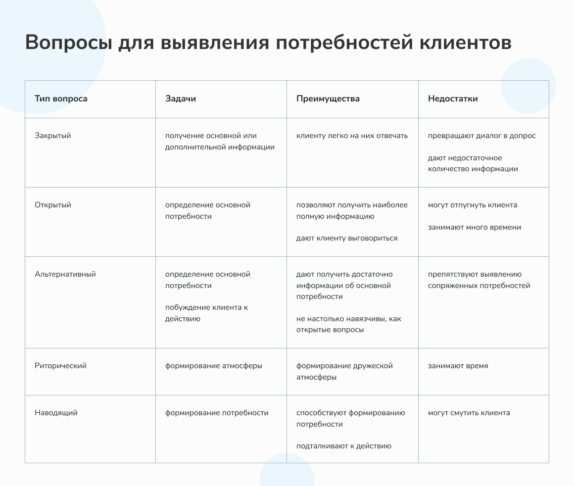 Мало знать, какой вопрос задать покупателю, важно уметь его правильно сформулировать. Для этого изучите типы вопросов