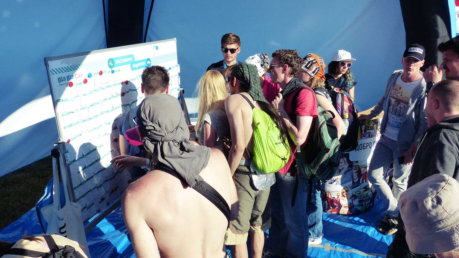 Что сделали мы: мы установили большую магнитную доску объявлений, где каждый желающий мог найти себе попутчиков, чтобы отправиться с фестиваля домой, будь он водителем или пассажиром. То есть мы показали, как работает BlaBlaCar в оффлайне, и на самом деле помогли многим уехать с фестиваля. Теперь эти люди – и даже те, кто в тот раз не нашел себе попутчиков, – вспомнят про BlaBlaCar, когда им понадобится отправиться в междугороднюю поездку.