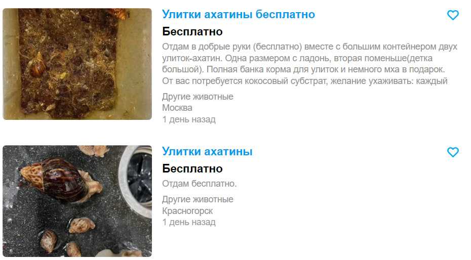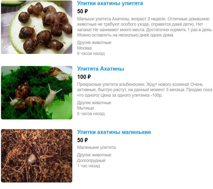 Но учитывайте, что заработок скорее не самый простой: большинство объявлений на Авито — это продажа улитят за 50-100р. за одну ахатину:
