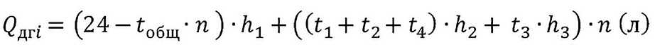 где Qгдi – расход топлива дизель-генератора на i тонн ЭМ в сутки, h1,2,3 – номинальный расход дизельгенератора в зависимости от нагрузки (табл. 4), t(1,2,3,общ) – время цикла на изготовление компонентов (табл. 2), n – количество циклов работы;