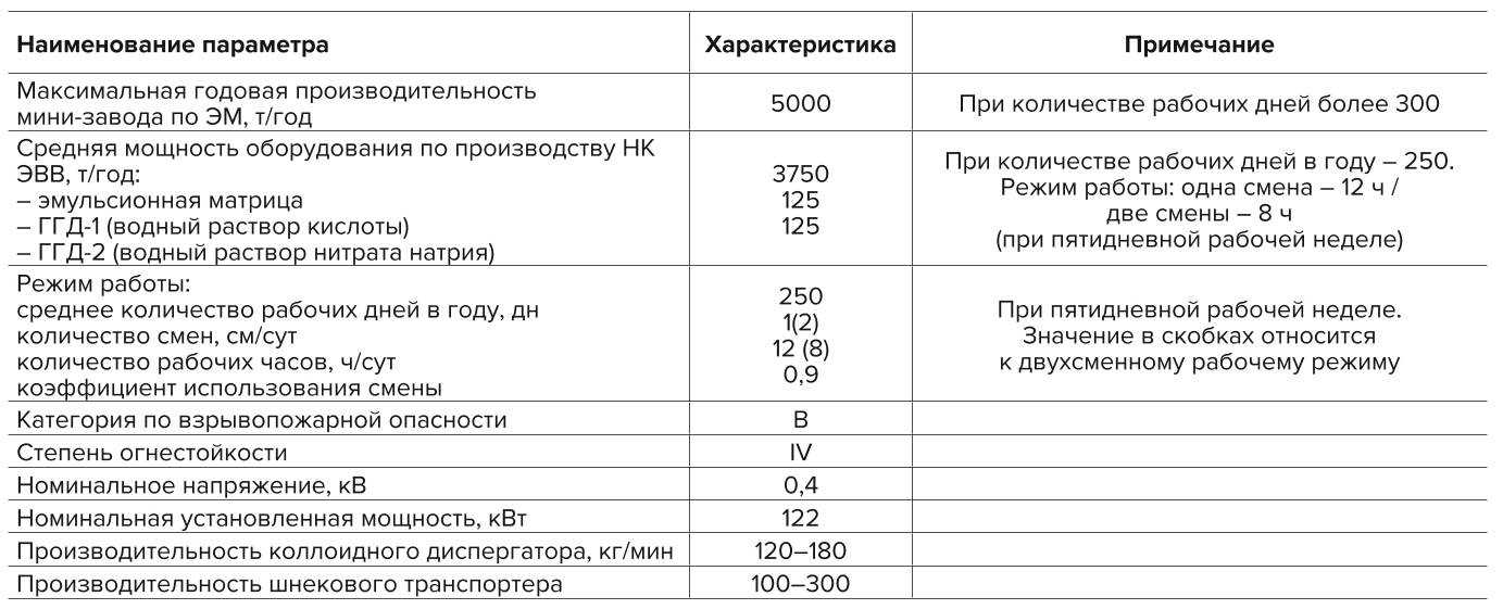 - Table 1 Technical specifications of the modular mobile plant for preparation of non-explosive components of emulsion explosives