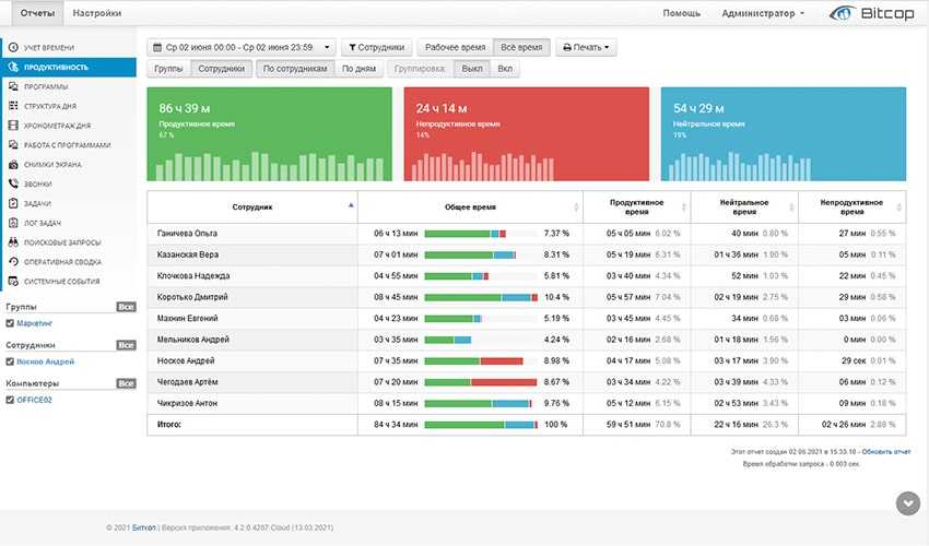 Что немаловажно для управления временем сотрудников – активная программа не видна и не нагружает систему