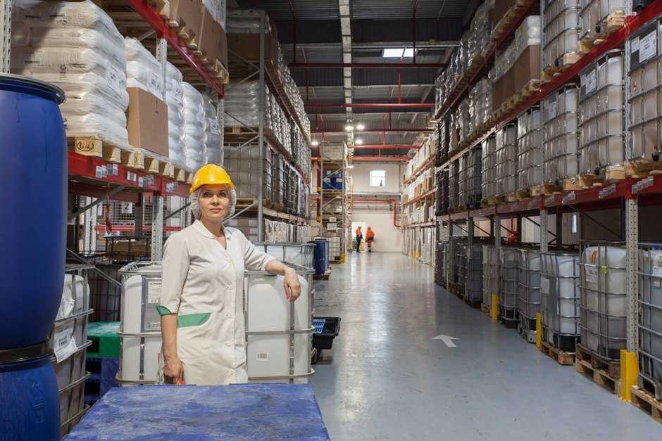 Большинство ингредиентов хранится в больших синих бочках: в начале склада можно найти «облепиховое безумие», чуть дальше — «масло жожоба», а заканчивается все «бензоатом натрия». Консерванты хранятся дольше всего, быстрее всех срок годности истекает у натуральных масел и экстрактов.