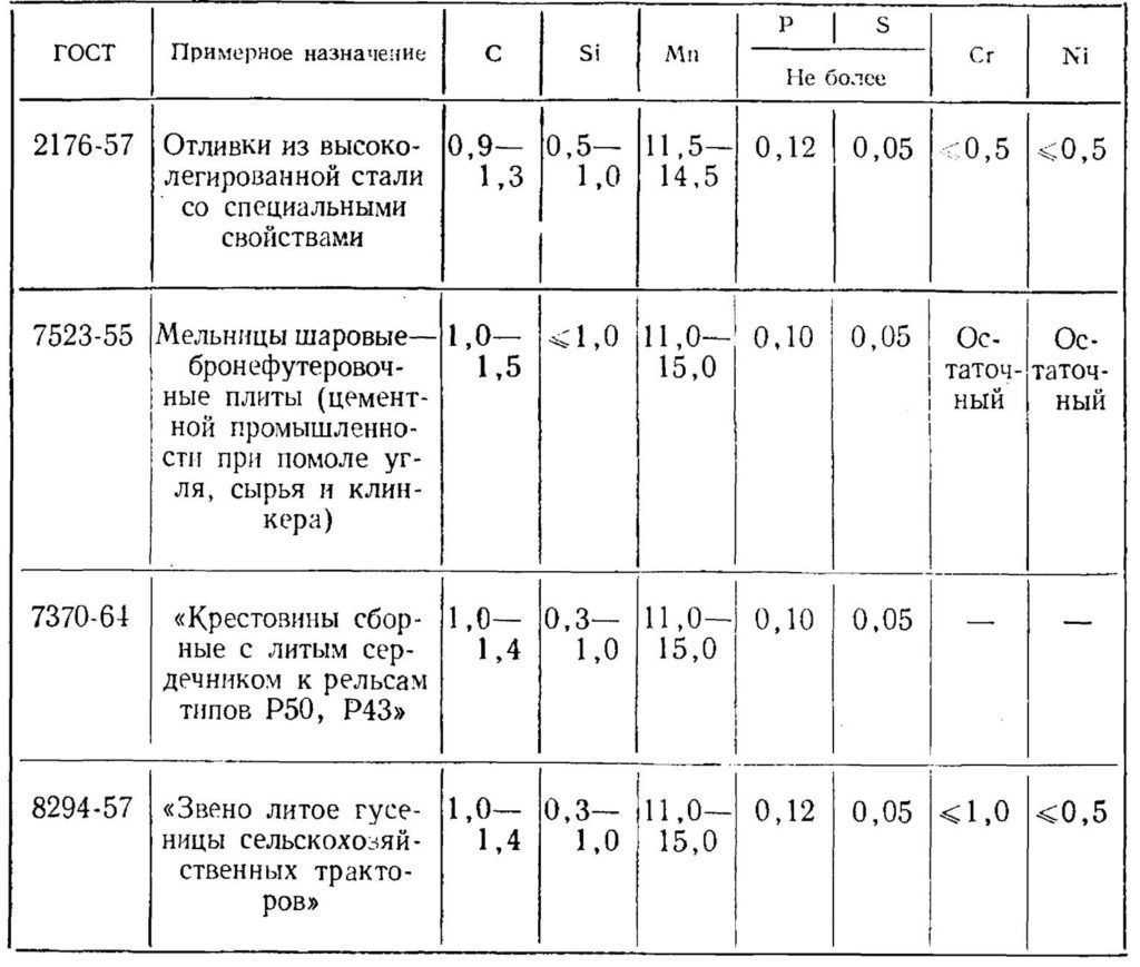 Отливки из стали 110Г13Л