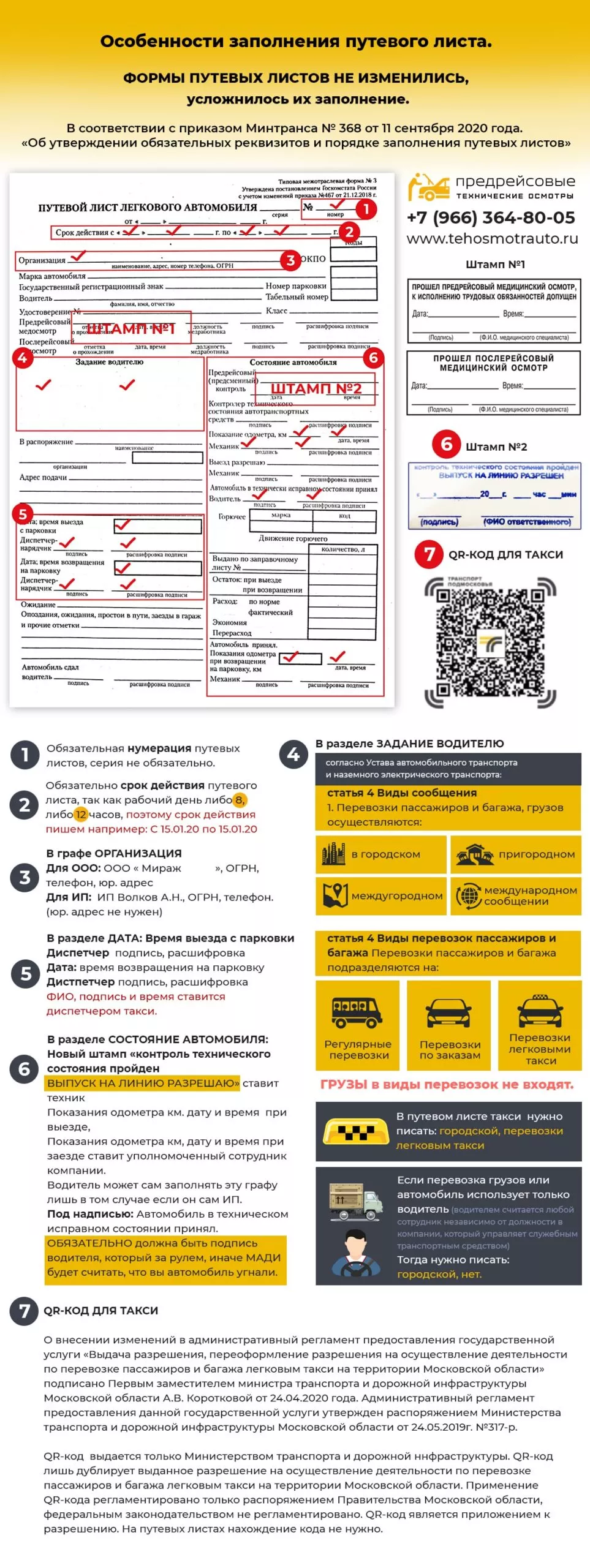 Обязательства по проверке информации и контролю правильности их внесения лежат также на заведующем транспортным парком, а также на руководителе предприятия. Путевой лист выдают водителю только под расписку.