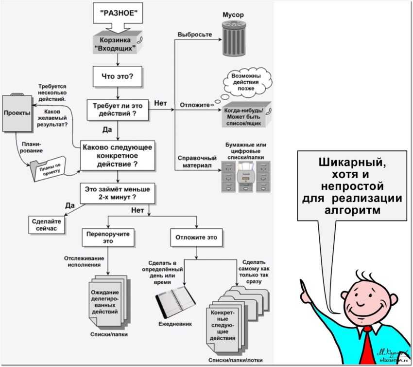 Гораздо более практична система принятия решений и обработки информации, которую применяют адепты системы GTD, разработанной Дэвидом Алленом.