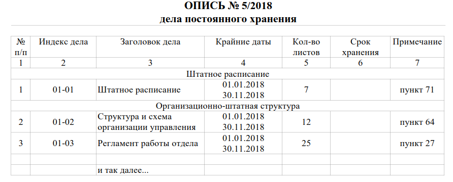 Далее ответственный делопроизводитель идет к руководителю подразделения, которое отвечает за организацию и контроль всего документооборота в рамках предприятия. Их обычно называют отделы документационного обеспечения или канцелярия. Там, после того как руководитель этого подразделения убедится, что все в порядке, он согласует опись и также ставит фактическую дату.