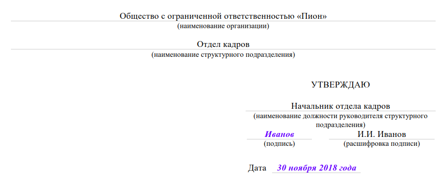 Первым подписывает ответственный за делопроизводство в подразделении и ставит фактическую дату