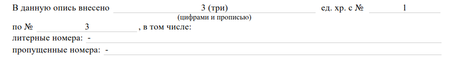 Как и в любой описи в конце заносятся количественные данные с порядковыми номерами.