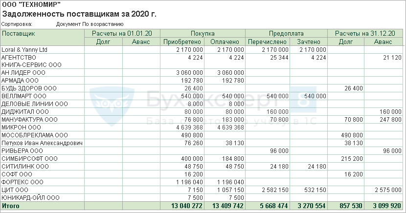 - Расшифровка дебиторской и кредиторской задолженности в 1С
