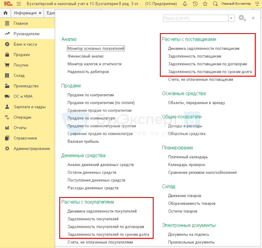 Где посмотреть дебиторскую и кредиторскую задолженность в 1С