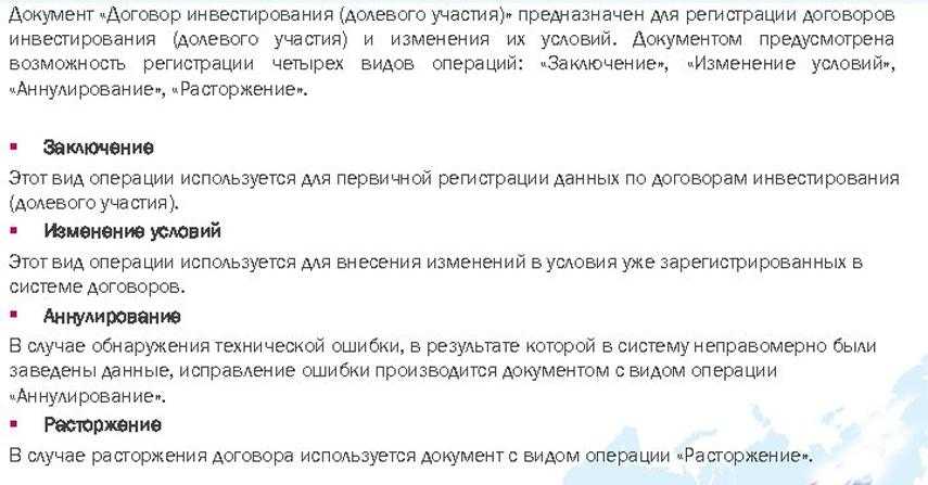 Чтобы договор имел силу, не требуется никакой дополнительной государственной регистрации. В то же время, пожалуй, одним из самых важных критериев таких договоров является достоверное и подробное описание имущества. Делается это для того, чтобы на основании такого описания можно было бы с легкостью идентифицировать объект инвестиций.