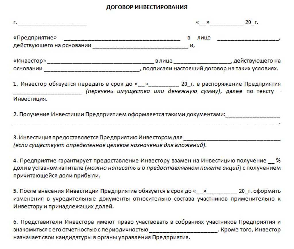 Обязательные реквизиты, подлежащие раскрытию, вы найдёте ниже. И так, договор соинвестирования образец: