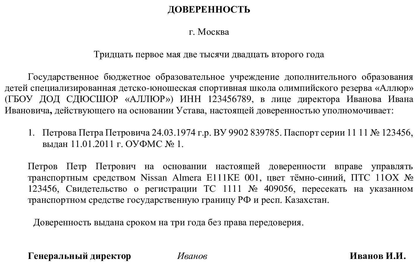 Достаточно только написать от руки, напечатать или скачать готовый образец и внести в него данные об автомобиле, собственнике и о том, для кого будет действовать бланк.