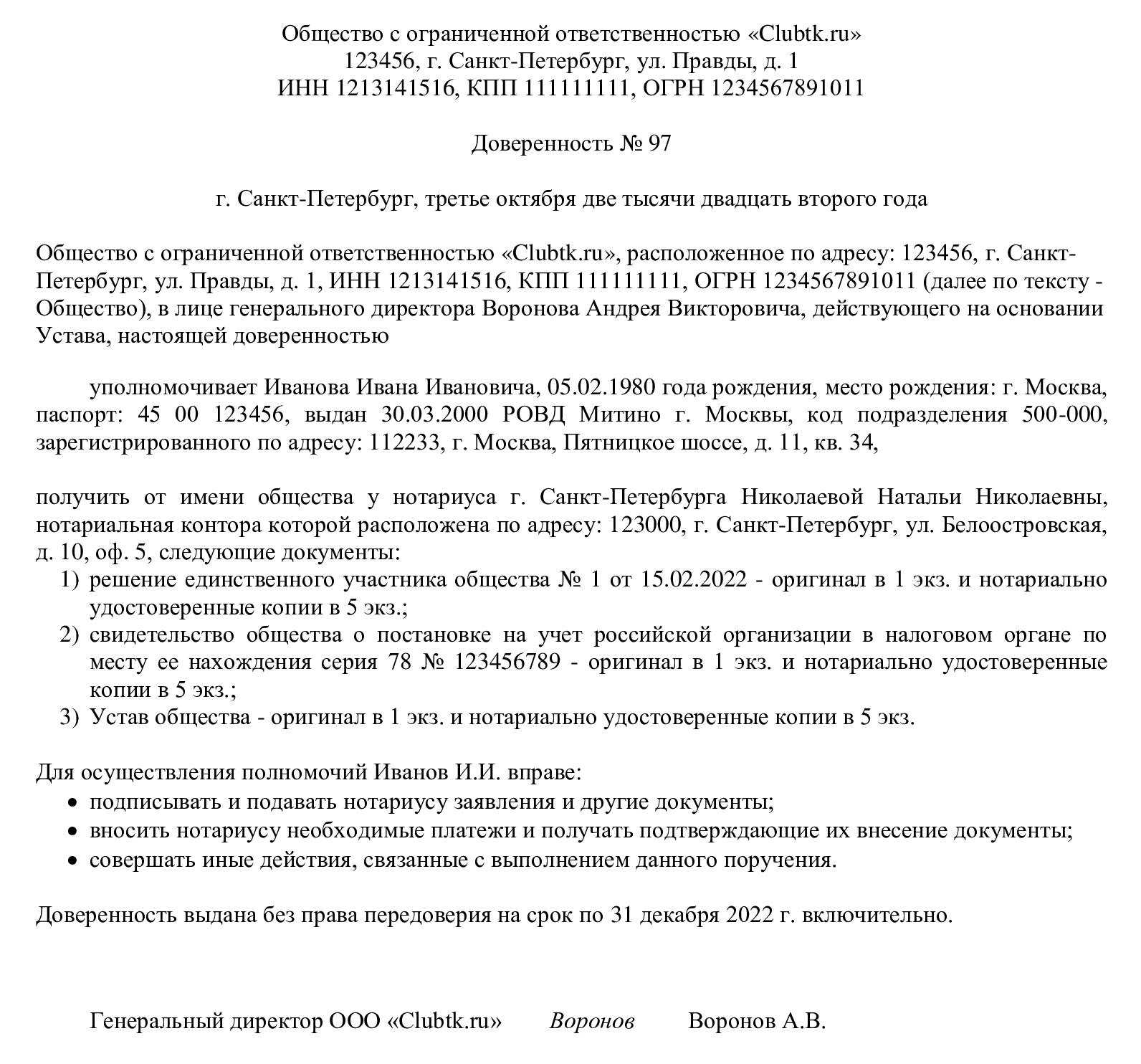 При оформлении доверенности от юридического лица могут потребоваться и другие документы, например, транспортные накладные, страховой полис, список назначенных исполнителей, товарные счета, сопроводительное письмо и так далее.