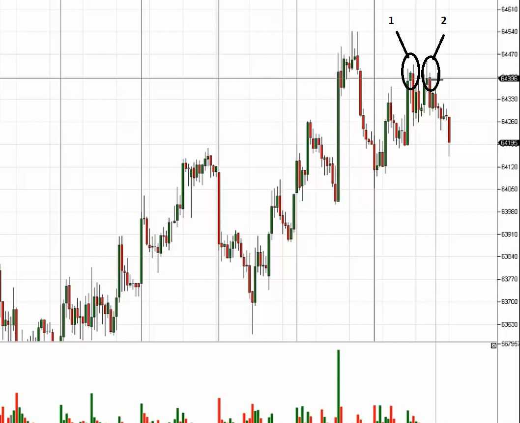 Далее характерно появление свечей для так называемого “граалеведения”. Все это в совокупности и рождает некий анализ. Но никогда под анализом не стоит понимать прогноз, что вот “если мы подходим к уровню 64195, то мы сейчас будем разворачиваться.” Извините конечно, но так торгуют только дебилы. По другому я к ним относиться не могу. Никто никогда не знает где, что будет и какой будет разворот. А вот предположить конечно можно.