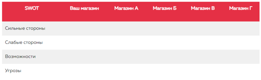 Приступать к анализу следует с поиска основных соперников в вашей сфере с такими же либо похожими предложениями. Затем нужно собрать доступные сведения о динамике посещаемости, отзывах покупателей, информацию о товарах, проводимых акциях и рекламных кампаниях.