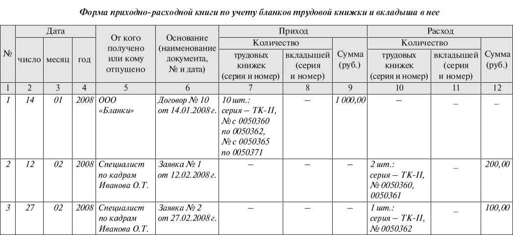 Книга учета трудовых книжек и вкладышей