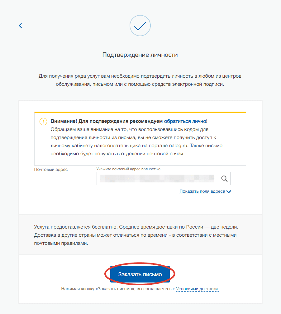 Доказать подлинность своей учетной записи посредством этого способа не представляется удобным для большинства пользователей. Кроме ожидания заказного письма в течение 2-х недель к недостаткам можно отнести невозможность получения доступа к личному кабинету на сайте nalog.ru, а также поход в почтовое отделение.
