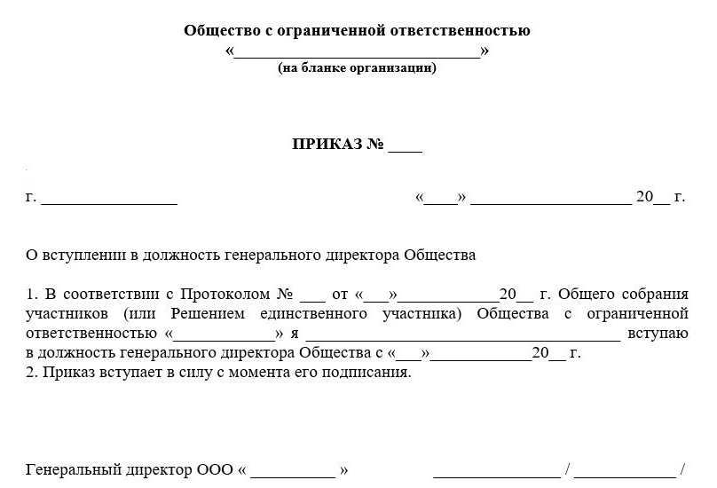 Подписание трудового договора с руководителем происходит по соглашению сторон. В учредительных документах фирмы очерчен круг его полномочий. После того как общим собранием учредителей принимается решение, вошедшее в протокол (или единственным учредителем), появляется основание издать приказ. Этим документом определяется вступление руководителя в должность.
